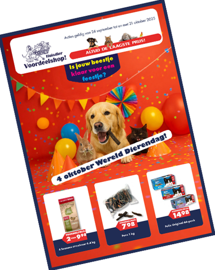 Huisdiervoordeelshop is een goedkope dierenwinkel met een breed assortiment voor hond, kat, knaagdier en vogel. Doordat wij groot inkopen en onze winkels zo efficiënt mogelijk ingericht hebben heb je bij Huisdiervoordeelshop altijd de laagste prijs! Of het nu om Royal Canin, Eukanuba, Beaphar, Frontline, het huismerk of één van onze andere merken gaat. Jouw huisdier is bij Huisdiervoordeelshop het voordeligst uit.