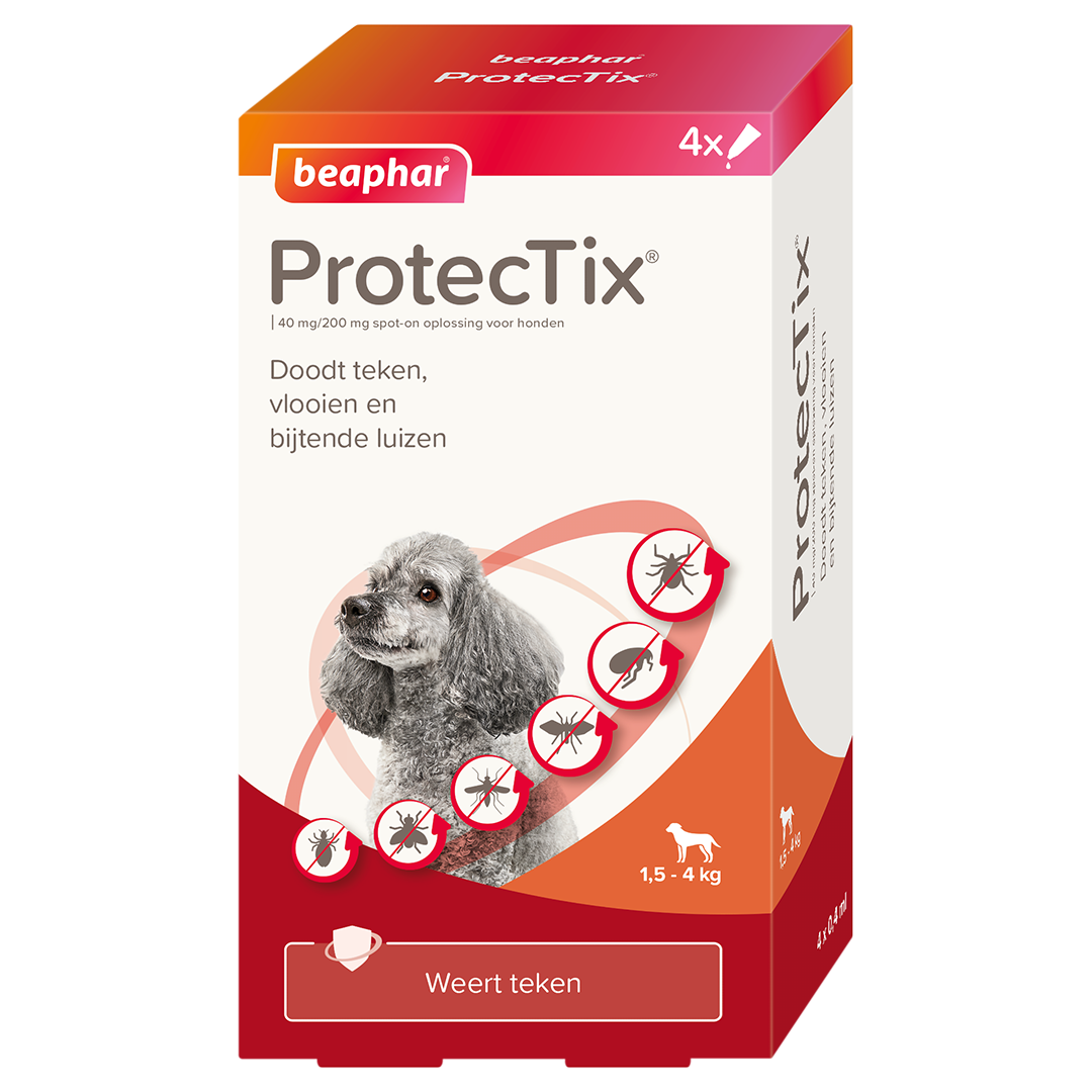 Beaphar ProtecTix is een snelwerkende spot-on die jouw hond beschermt tegen teken, vlooien, bijtende luizen, zandvliegen, muggen en stalvliegen.