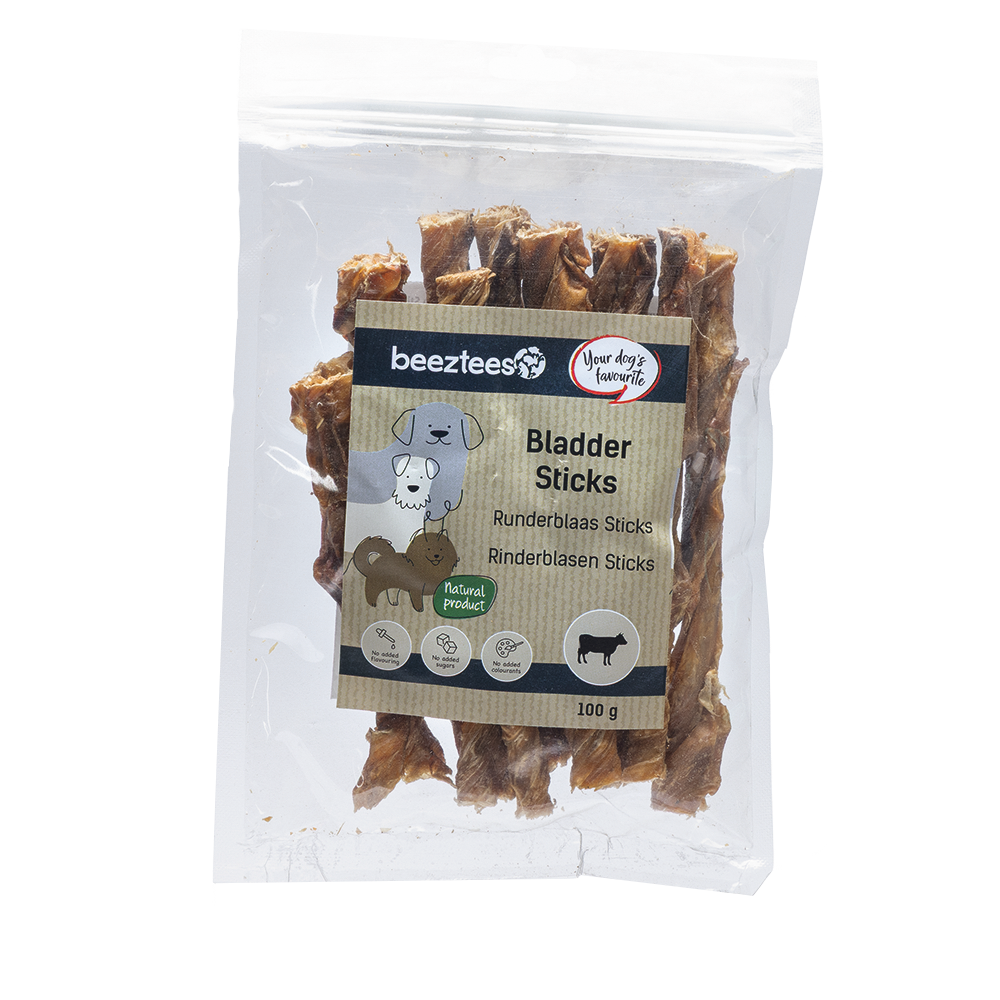 De Gedraaide Blaassticks 100 g zijn een pure, veilige en smakelijke beloningssnack van runderblaas, vrij van kunstmatige toevoegingen. Door hun stevige structuur en gebitsvriendelijke eigenschappen leveren ze langdurig kauwplezier en ondersteuning voor mondhygiëne.