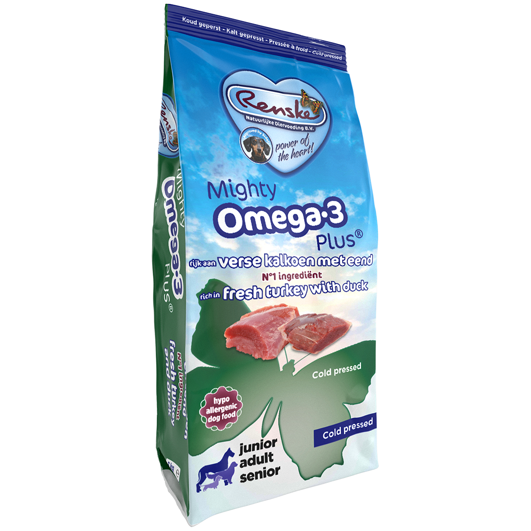 Renske Mighty Omega-3 Plus complete voeding met verse kalkoen en eend is speciaal samengesteld voor volwassen honden van alle leeftijden, maar is echter vanwege de grote van de brok niet geschikt voor hele kleine honden. Met een hoog gehalte aan dierlijke ingrediënten, krijgt je hond een smakelijke en voedzame maaltijd die rijk is aan hoogwaardige eiwitten.