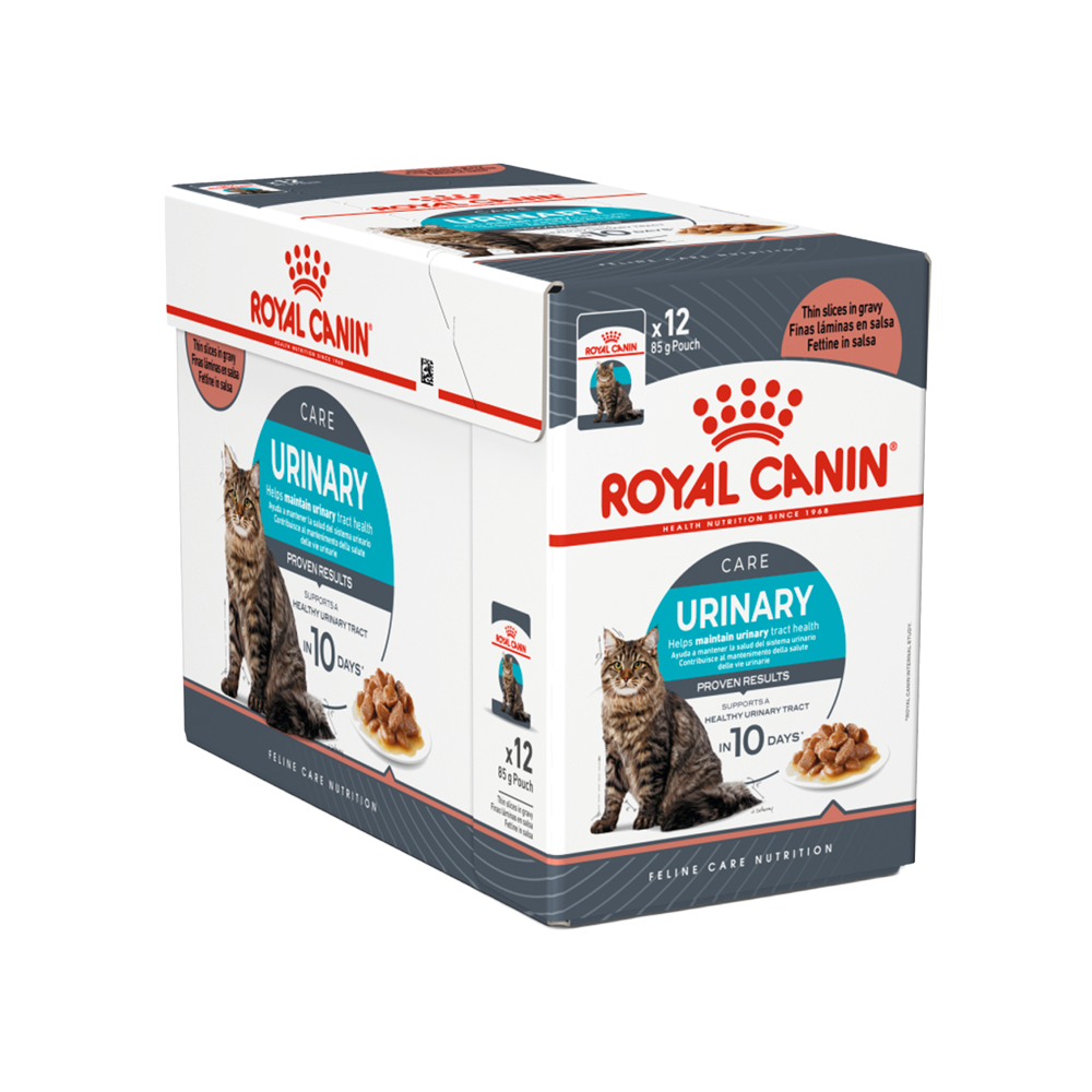 Royal Canin Urinary Care in gravy is natvoer voor volwassen katten, speciaal samengesteld om de gezondheid van de urinewegen te ondersteunen. Het bevat een uitgebalanceerde mineraalverhouding en ingrediënten die helpen bij het behouden van een veilige pH in de urine. De fijne stukjes vlees in saus maken het smakelijk en makkelijk eetbaar voor katten die minder enthousiast zijn over droogvoer.