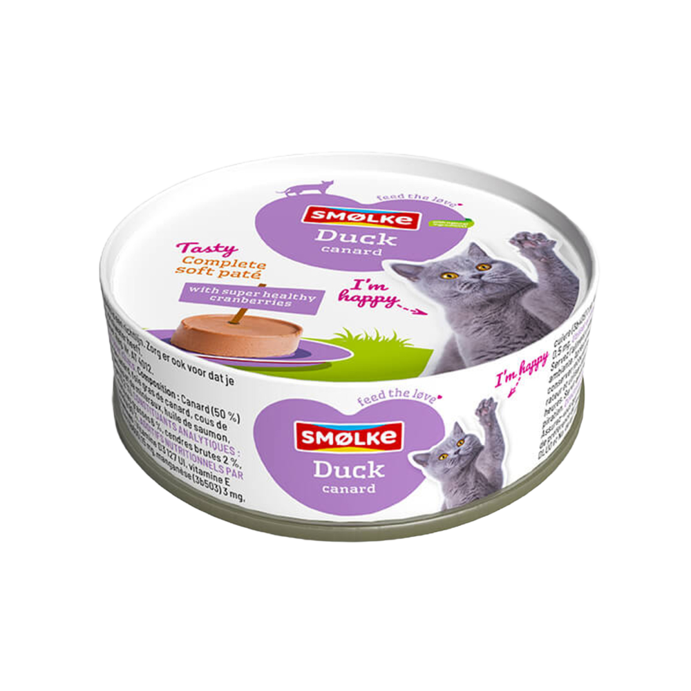 De Smølke Soft Paté Kat Game Duck 80 g combineert zachte, romige textuur met wild en eend en een volledig uitgebalanceerde samenstelling. Dankzij het gebruik van natuurlijke ingrediënten zonder kunstmatige toevoegingen is het een verantwoorde keuze voor je kat
