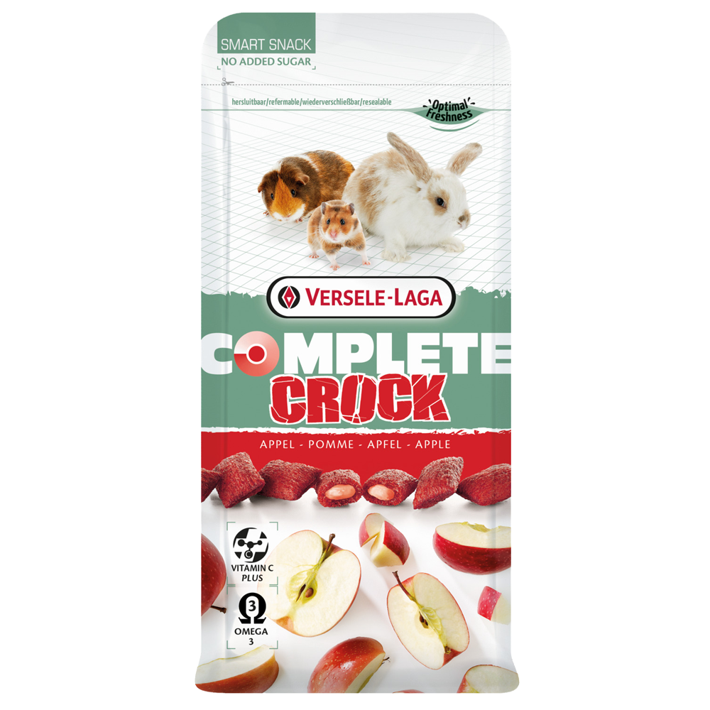 De Versele-Laga Crock apple is krokant van buiten, zacht van binnen — met toegevoegde vitaminen en omega-3. Dankzij de verantwoorde samenstelling zonder toegevoegde suikers is hij ideaal als smakelijk én gezond tussendoortje voor konijnen en knaagdieren.
